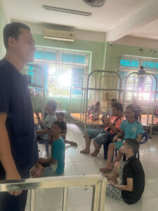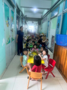 Sau khi cùng trao đổi về tổ chức và tình hình hoạt động chung, Đoàn đã đi thăm các Khoa của Trung tâm. Tại Trung tâm có 04 khoa: khoa Sơ sinh (từ sơ sinh đến 2 tuổi, hiện nay có 88 cháu); khoa Nhi đồng (từ 2 tuổi đến hết lớp Lá có 86 cháu); khoa Khuyết tật (hiện nay có 61 cháu); khoa Thanh Thiếu niên (có hơn 65 cháu). Tổng các cháu đang nuôi dạy tại Trung tâm có hơn 300 trẻ (cao nhất trong các Trung tâm Bảo trợ, Làng thiếu niên hiện do Lực lượng TNXP TP.HCM quản lý).